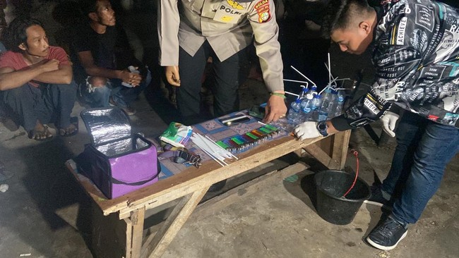 Berdasarkan foto yang diterima detikcom, terlihat pihak kepolisian menyita sejumlah barang bukti berkaitan dengan narkoba. Terlihat ada beberapa botol dengan sedotan yang biasa digunakan untuk narkoba jenis sabu hingga sejumlah korek api gas.