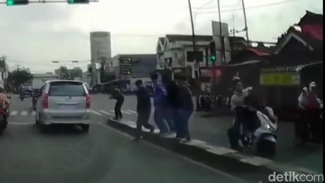 Seorang pelajar tewas dibacok hingga bersimbah darah di Simpang Pomad, Kota Bogor. Peristiwa ini rupanya terekam dashcam salah satu mobil yang melintas.