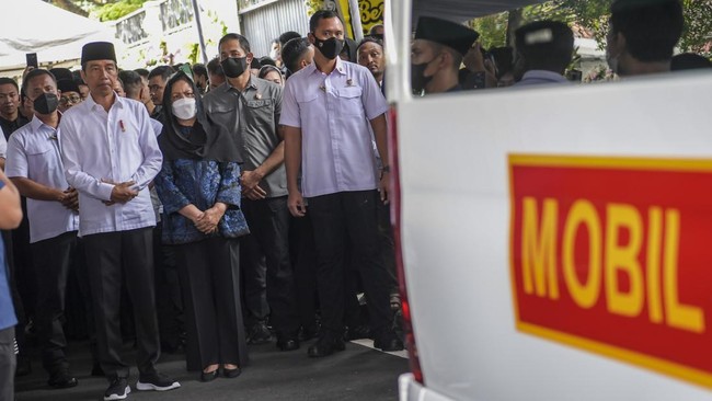 Sejumlah menteri Jokowi melayat ke rumah duka yang terletak di Jalan Terusan Lembang Nomor D54, Menteng, Jakarta Pusat. Pantauan detikcom di lokasi, menteri yang datang antara lain Menkeu Sri Mulyani, Menko Polhukam Mahfud Md, Menteri Investasi Bahlil Lahadalia, Menteri Perencanaan Pembangunan Nasional/Kepala Bappenas Suharso Monoarfa.
