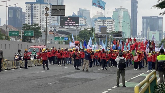 Massa buruh kembali menggelar demo terkait Tolak Perppu Cipta Kerja (Ciptaker) di depan gedung DPR RI hari ini. Massa buruh sempat long march saat menuju ke depan gedung DPR hingga menyebabkan lalu lintas (lalin) macet.