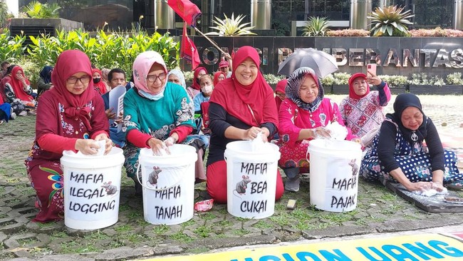 Puluhan emak-emak yang menamai diri Serikat Perjuangan Rakyat Indonesia (SPRI) berunjuk rasa di depan gedung KPK. Mereka menuntut lembaga antirasuah itu mengusut kasus dugaan korupsi yang melibatkan pegawai Pajak Kementerian Keuangan (Kemenkeu).