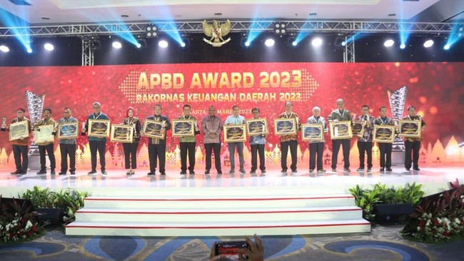 Kementerian Dalam Negeri (Kemendagri) memberikan penghargaan kepada kepala daerah dengan realisasi Anggaran Pendapatan dan Belanja Daerah (APBD) tertinggi. Penghargaan itu diberikan dalam acara APBD Award dan Rapat Koordinasi Nasional (Rakornas) Keuangan Daerah Tahun 2023 di Mercure Convention Centre Ancol Jakarta.