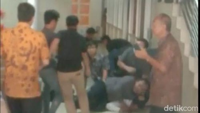 Dari video amatir yang diterima detikSumut, tampak seorang pelaku mengenakan kemeja putih dan celana panjang hitam berada di dalam bank dengan kondisi tertidur. Pada sekitar wajahnya tampak sejumlah luka akibat dipukuli oleh sejumlah warga.