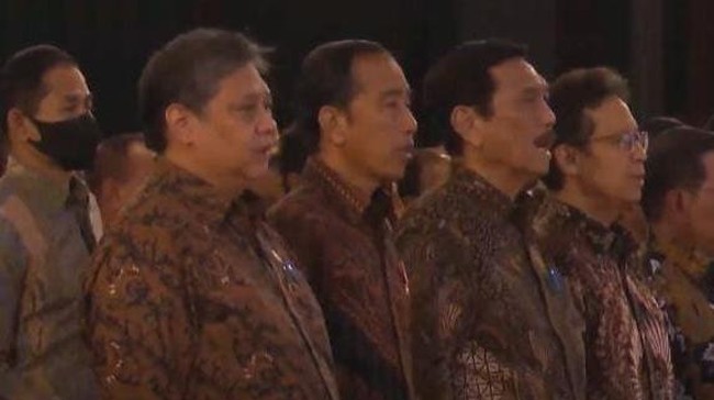 Selain itu, tampak hadir Menko Kemaritiman Luhut Binsar Pandjaitan, Menko Perekonomian Airlangga Hartarto, Menteri Keuangan Sri Mulyani, Menteri Kesehatan Budi Gunadi Sadikin, Sekretaris Kabinet Pramono Anung dan Pj Gubernur DKI Jakarta Heru Budi.