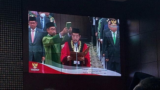 Anwar Usman dan Saldi Isra terpilih menjadi Ketua dan Wakil Ketua Mahkamah Konstitusi (MK) masa jabatan 2023-2028. Keduanya pun mengucapkan sumpah jabatan hari ini.