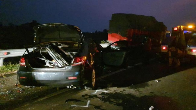 Yovan mengatakan mobil yang berisi lima orang ini menabrak truk yang ada di depannya di Km 315 Jalur A.