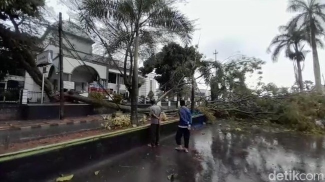 "Tadi barusan hujan gede sama angin muter-muter," kata pedagang bernama Isa di depan kantor Mal Pelayanan Publik (MPP) Senin (20/3/2023).