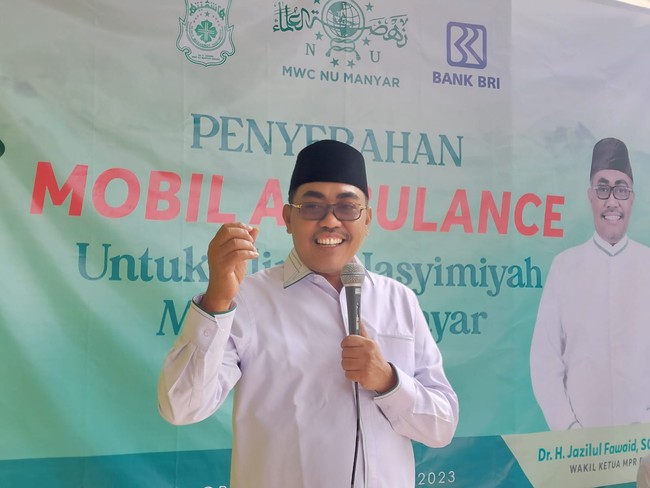 Hal ini diungkapkan Gus Jazil saat penyerahan mobil ambulans untuk Klinik Mabarrot Hasyimiyah MWC NU Manyar, hari ini.