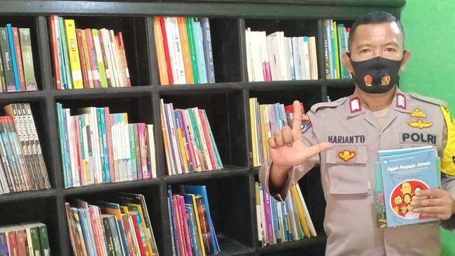 "Beliau bawa kendaraan motor, itu (boks motornya) ya isinya buku, ngajak anak-anak siswa SD sampe SMA kalau pas lagi kumpul-kumpul atau remaja-remaja pas lagi santai di lapangan atau tempat tongkrongan itu beliau bawa buku mengajak untuk membaca. Jadi beliau terkenalnya di sini polisi literasi," kata Adi kepada detikcom, Jumat (10/3/2023).