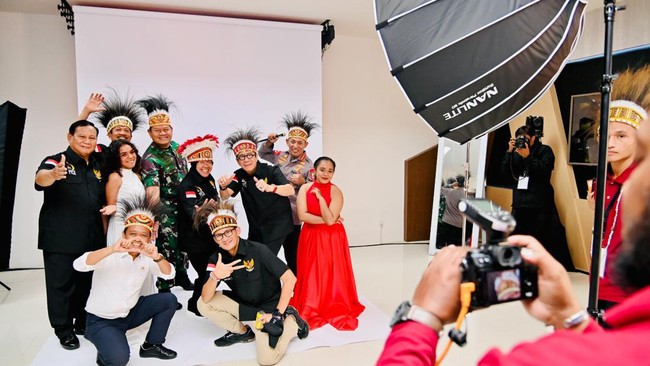 Sejumlah menteri Kabinet Indonesia Maju mendampingi Presiden Joko Widodo (Jokowi) saat meresmikan Papua Youth Creative Hub (PYCH), Jayapura. Mereka sempat berfoto bersama.