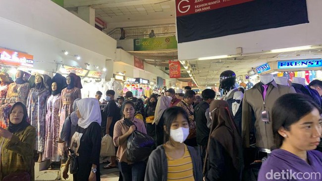Pantauan detikcom di lokasi, Rabu (22/3/2023), pukul 10.05 WIB, keramaian terlihat di Blok B Pasar Tanah Abang. Tepatnya di lantai LG pusat busana muslim. Para pengunjung berburu pakaian yang hendak dibeli.