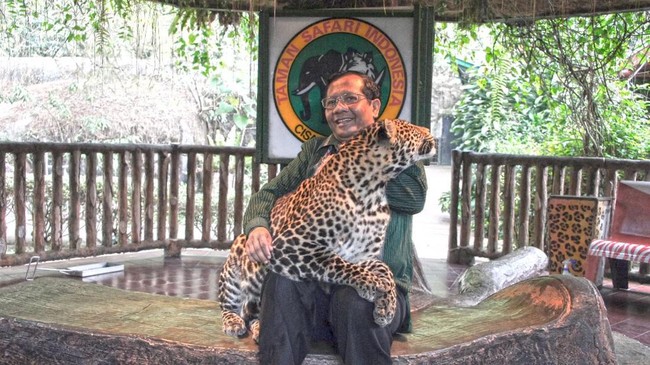 Dalam foto itu tampak Mahfud sedang duduk memangku macan tutul dengan background Taman Safari Indonesia. Mahfud terlihat tersenyum, sementara macan tutul di pangkuannya menoleh ke samping. Ada pula foto Mahfud yang berdiri menoleh ke koala yang sedang ada di atas pohon.