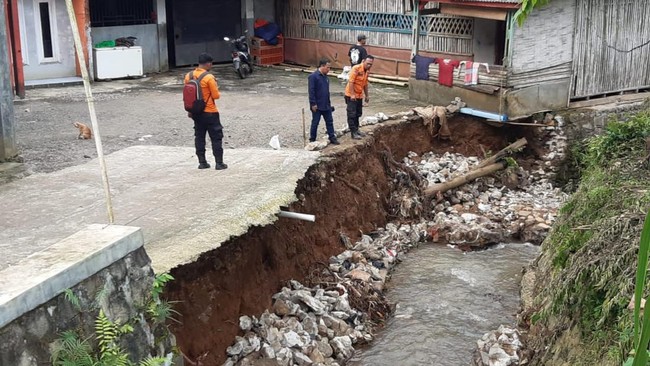 Hujan deras melanda kawasan Kabupaten Bogor, Jawa Barat (Jabar), beberapa hari belakangan. Akibatnya, tembok penahan tanah (TPT) di wilayah Desa Pasir Muncang, Kecamatan Caringin, Bogor, mengalami longsor.