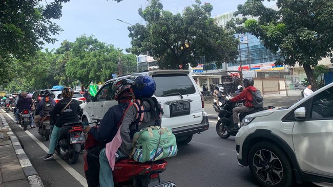 Pantauan detikcom di lokasi, Selasa (28/3/2023), pukul 09.40 WIB, bunyi klakson dari kendaraan yang melintas di Jl Kalibata Raya arah Jl Pasar Minggu bersahut-sahutan. Kendaraan memadati ruas jalan.