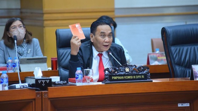 "Udah pada ribut pansus-pansus itu sudah di grup Komisi III, ini pansus sama angket sama, angket aja angket, sampai bingung Pak nggak bisa bedain angket dengan interpelasi, esmosi og Pak," imbuh Bambang yang disambut tawa di ruang rapat.
