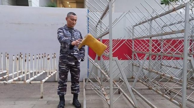 Mantan Komandan Lapangan RSDC Wisma Atlet, Kolonel M Arifin mengenang tempat perawatan dan isoalasi pasien Corona (COVID-19) di Wisma Atlet yang secara resmi telah ditutup. Dia memperlihatkan sepatu bot berwarna kuning.