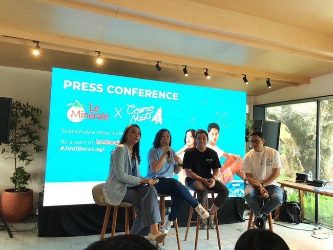 Le Minerale menjalin kolaborasi bersama brand pakaian anak muda Cosmonauts menghadirkan pakaian berbahan daur ulang plastik PET. Kerja sama tersebut bertujuan untuk mengajak anak muda agar menerapkan gaya hidup keberlanjutan dan peduli terhadap lingkungan.