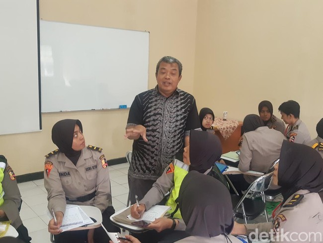 Namun tak lama kemudian, dia segera beringsut ke kelas karena jarum jam sudah menunjukkan pukul 09.00 WIB. Dia harus mengisi kelas hak asasi manusia (HAM). Di dalam, ada 25 orang polwan calon perwira yang siap mengikuti pelajaran dari pria 56 tahun kelahiran Cilacap ini.