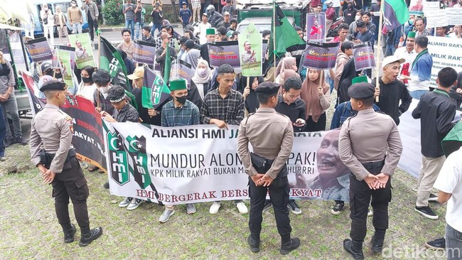 Ada tiga elemen massa yang melakukan demo di KPK hari. Massa ini terdiri dari Pergerakan Mahasiswa Islam Indonesia (PMII), Aliansi HMI Jakarta Raya, dan Aliansi Rakyat Peduli Keadilan.