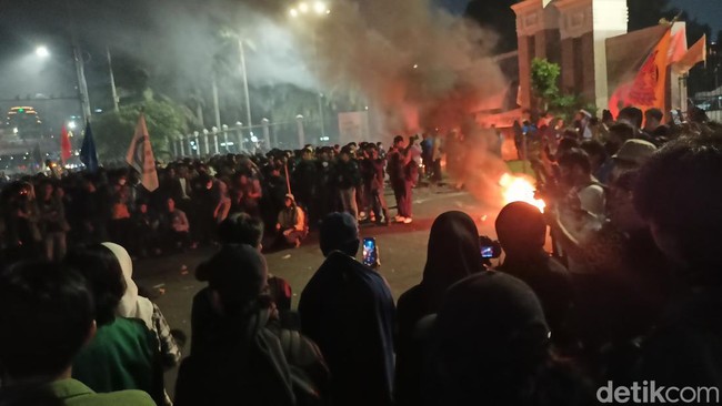 "Kita besarkan api-api yang ada di depan gedung DPR teman-teman. Sepakat teman-teman?" ujar seorang orator dari mobil komando.