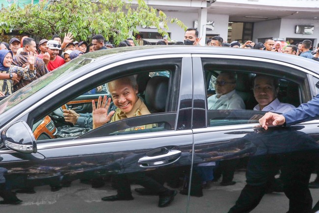 Video dan foto Ganjar semobil dengan Jokowi beredar luas di media sosial. Ketika turun dari mobil, keduanya juga disambut meriah oleh warga.