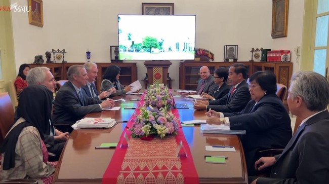 Sementara itu, dalam pertemuan itu, Jokowi menyampaikan komitmen Indonesia terhadap isu perubahan iklim dan lingkungan. Kepada para delegasi AS, Jokowi memamerkan capaian Indonesia dalam bidang perubahan iklim.