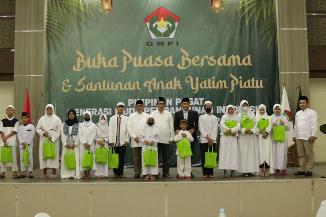 Pimpinan Pusat Generasi Muda Pembangunan Indonesia (PP GMPI) menggelar buka puasa bersama dan santunan anak yatim piatu. Kegiatan ini digelar salah satu organisasi sayap PPP di Aula Perumahan DPR RI Kalibata, Jakarta Selatan.