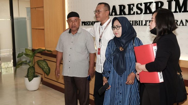 Pantauan detikcom di lokasi, Kamis (13/4/2023), Drajat tiba di Bareskrim Polri sekitar pukul 10.00 WIB. Dia terlihat mengenakan baju berwarna biru gelap.