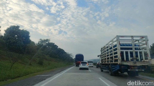 Pantauan detikcom di Tol Cipali, Jumat (14/4/2023), pukul 06.38 WIB kendaraan yang melintas ke awah Jawa didominasi oleh pelat nomor B. Lalu lintas masih terpantau ramai lancar.