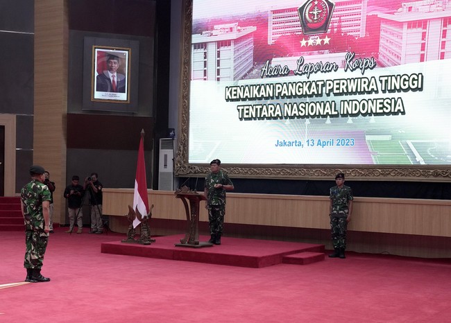 Berdasarkan keterangan Pusat Penerangan (Puspen) TNI, Jumat (14/4/2023), Korps Raport kenaikan pangkat digelar di Aula Gatot Soebroto Mabes TNI Cilangkap, Jakarta Timur (Jaktim), Kamis (13/4) kemarin. Promosi kenaikan pangkat ini berdasarkan Surat Perintah Panglima TNI Nomor Sprin /637/IV/223 tanggal 13 April 2023.