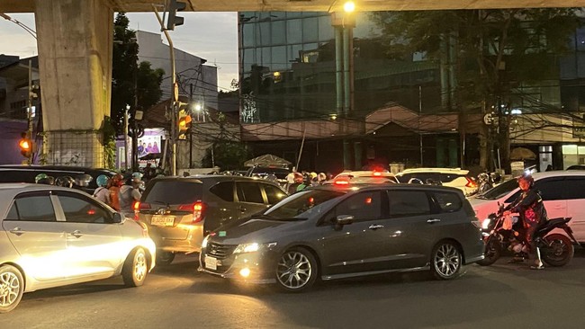 Kendaraan menumpuk di tengah simpang. Kondisi itu membuat lalu lintas macet. Kendaraan dari Jalan Kapten Tendean tak bisa melaju menuju arah Kebayoran Baru lantaran tertutup kendaraan lainnya.