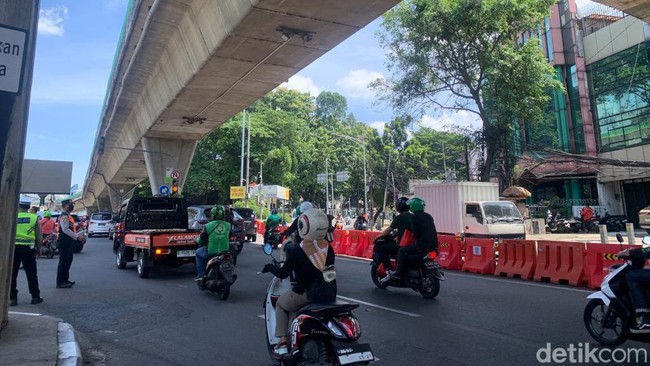 Pada Jumat (14/4), barier penutup Simpang Pasar Santa, Jakarta Selatan, digeser oleh pengendara yang ingin ke arah Tendean dari Jalan Wijaya. Alhasil, para pengendara langsung belok kanan ke Tendean meski dilarang.