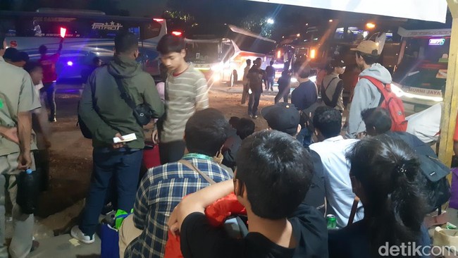 Pada malam sepekan sebelum Lebaran ini, pemudik sudah berjubel di Terminal Pondok Pinang. Bus-bus antarprovinsi bergantian menjemput penumpang.