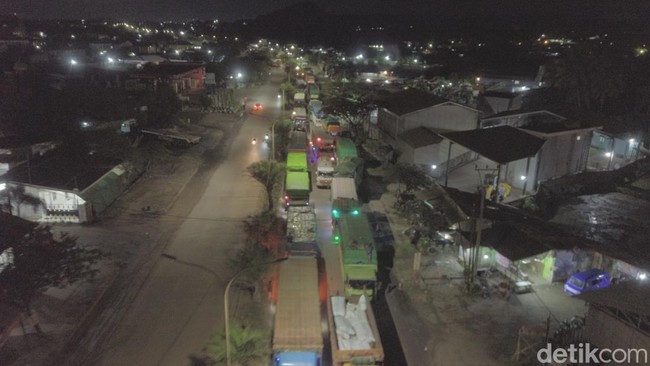 Kemacetan di Jalan Lingkar Selatan (JLS) Cilegon terjadi sejak malam hingga dini hari. Jalur menuju Pelabuhan Ciwandan itu dipenuhi truk yang hendak menyeberang ke Sumatera.