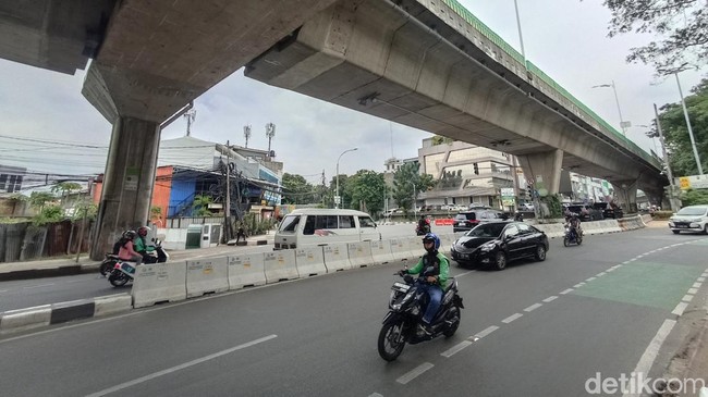 Pantauan di lokasi pukul 11.18 WIB, Minggu (16/4/2023), pembatas jalan beton dipasang memanjang di persimpangan hingga pos polisi. Pengendara dari Jalan Wijaya I sudah tidak bisa lagi belok langsung ke arah Jalan Kapten Tendean.
