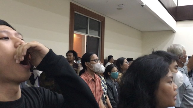 "Majelis hakim memasuki ruang sidang. Hadirin dimohon berdiri," terdengar suara pemberitahuan di ruang sidang PN Jaktim, Senin (17/4/2023).