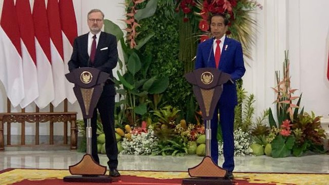 Presiden Joko Widodo (Jokowi) melakukan pertemuan dengan Perdana Menteri (PM) Republik Ceko, Petr Fiala. Jokowi menyebut kedatangan Fiala menjadi momen pertama kalinya kepala pemerintahan Ceko ke Indonesia.