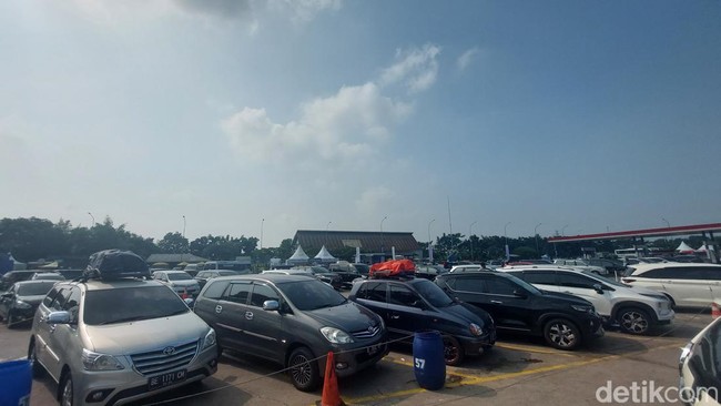 Pantauan detikcom di lokasi, Rabu (19/4/2023), pukul 13.05 WIB seluruh area parkir dipenuhi pemudik. Kendaraan yang terparkir didominasi oleh mobil pribadi dan bus penumpang.