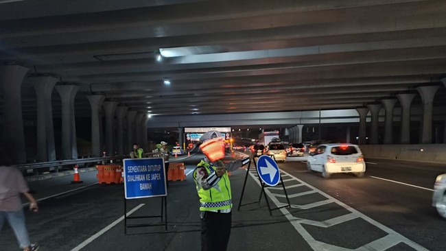 Pantauan detikcom di lokasi, Sabtu (19/4/2023), penutupan dilakukan pada pukul 21.10 WIB. Petugas tampak memasang barier dan plang penanda arus lalu lintas dialihkan. Kendaraan dari Bekasi atau Jakarta dialihkan lewat bawah ke Jalan Tol Jakarta-Cikampek.