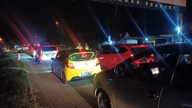 Pantauan detikcom dilokasi, pukul 00.55 WIB, Kamis (20/4/2023), kendaraan dari arah Jakarta yang keluar melalui gerbang tol Merak hanya dapat berjalan pelan. Sejumlah petugas kepolisian berada di lokasi untuk mengatur lalu lintas di lokasi.