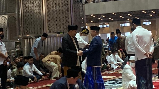 Setibanya, Anies menyempatkan diri untuk menyapa dan memberi salam sejumlah tokoh saat memasuki Masjid Istiqlal. Dia juga bersalaman dengan Ketua Umum PAN, Zulfikli Hasan (Zulhas).
