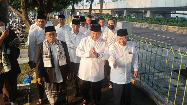 Ketua Umum Partai Gerindra Prabowo Subianto melaksanakan Salat Idul Fitri di Masjid Agung Al Azhar, Jakarta Selatan. Prabowo bersama rombongannya telah tiba.