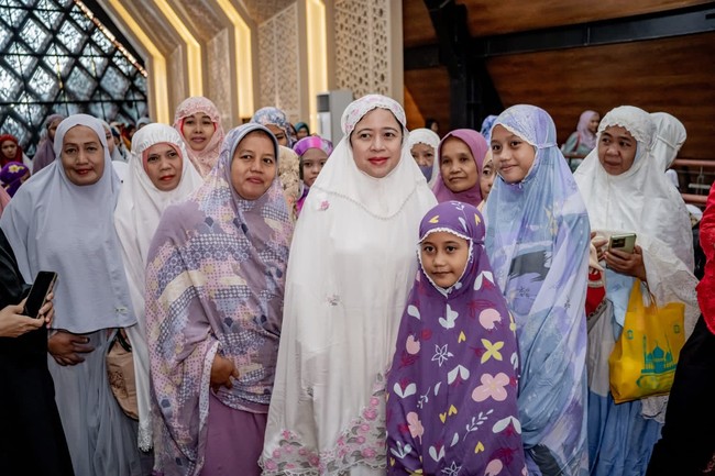 Ketua DPR RI Puan Maharani bersama keluarga melaksanakan Salat Idul Fitri di Masjid At-Taufiq, Lenteng Agung, Jakarta Selatan. Ia mengajak masyarakat untuk merayakan Lebaran dengan hati yang gembira.