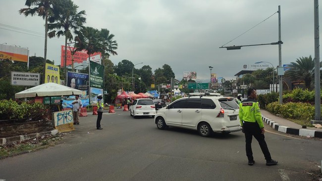 Kondisi cuaca di Jalan Raya Puncak sendiri terpantau mendung berawan gelap. Sejumlah petugas kepolisian tampak mengatur lalu lintas.