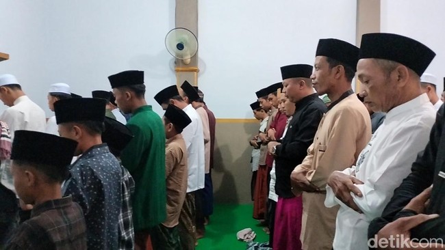 Para jemaah berdatangan ke musala Al-Barokah dan menunaikan salat Id tepat pukul 06.30 WIB. Mereka datang sambil membawa makanan rasol atau tumpeng, yang diberikan ke tokoh agama jemaah Aboge.