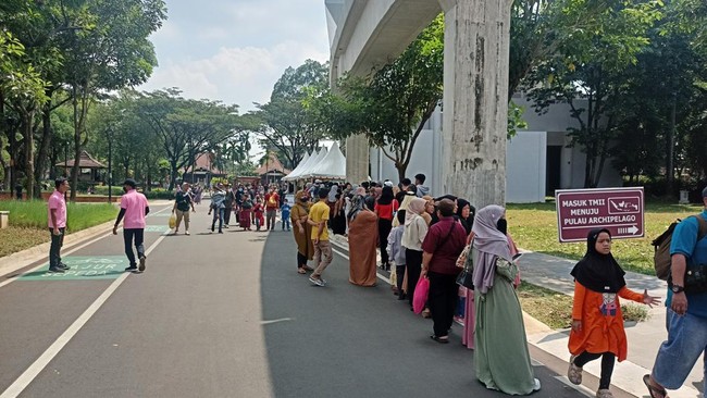 Pantauan detikcom di lokasi, Minggu (23/4/2023), sejak memasuki TMII, terjadi antrean kendaraan yang akan memasuki ruang parkir. Sejumlah petugas mengarahkan kendaraan agar memasuki ruang parkir dengan tertib.
