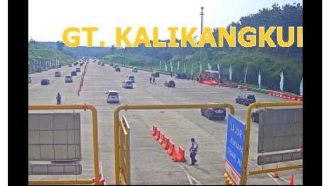Rekayasa satu arah atau one way dari Gerbang Tol Kalikangkung menuju Jakarta resmi diberlakukan. Kondisi lalin arus balik di GT Kalikangkung pun kini ramai lancar setelah one way berlaku.