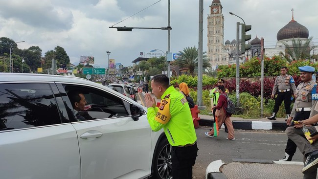 "Yang ke arah Bogor atau Jakarta bisa ambil kanan silakan," kata petugas kepolisian dari pengeras suara.