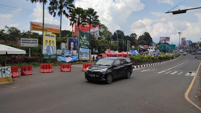 Pantauan detikcom di Simpang Gadog, kendaraan dari arah Jakarta menuju Puncak untuk sementara tidak bisa melintas. One way diterapkan secara situasional melihat volume kendaraan di kawasan Puncak.