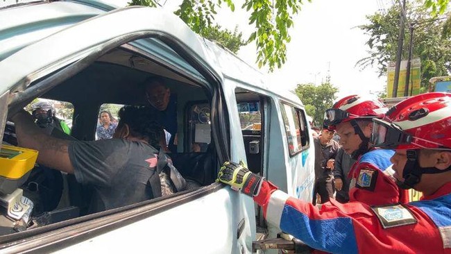 Selain itu, seorang penumpang yang duduk di samping kiri sopir masih ada di dalam mobil angkot. Proses evakuasi dinyatakan selesai pukul 13.10 WIB.